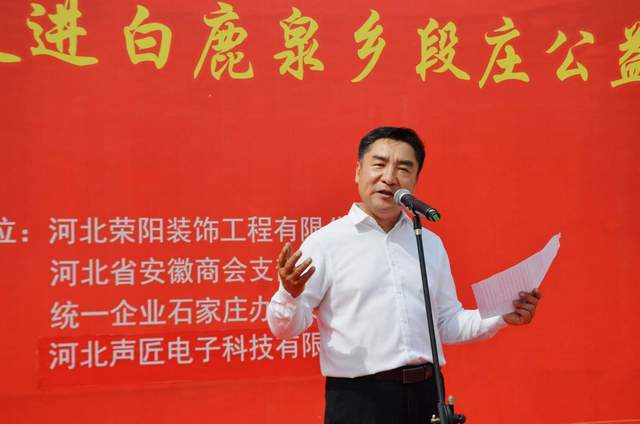 活动于上午 9 时 30 分准时启幕。段庄村第一书记闫嘉庆率先致欢迎辞,他对中国老兵文工团一行的到来表示热烈欢迎,并向文工团心系乡村、情牵群众的善举致以诚挚谢意。随后,中国老兵文工团团长潘伟发表主旨讲话,他深刻阐述了此次活动在弘扬爱国主义精神、关爱退役老兵及烈士遗属等特殊群体、推动乡村振兴战略实施等方面的重要意义。潘伟团长强调,老兵文工团始终秉持社会责任,希望通过此类活动,让红色精神在乡村大地绽放新的光彩。最后,白鹿泉乡相关领导登台发言,对活动的开展给予高度肯定,并表达了对文工团无私奉献的由衷感谢。